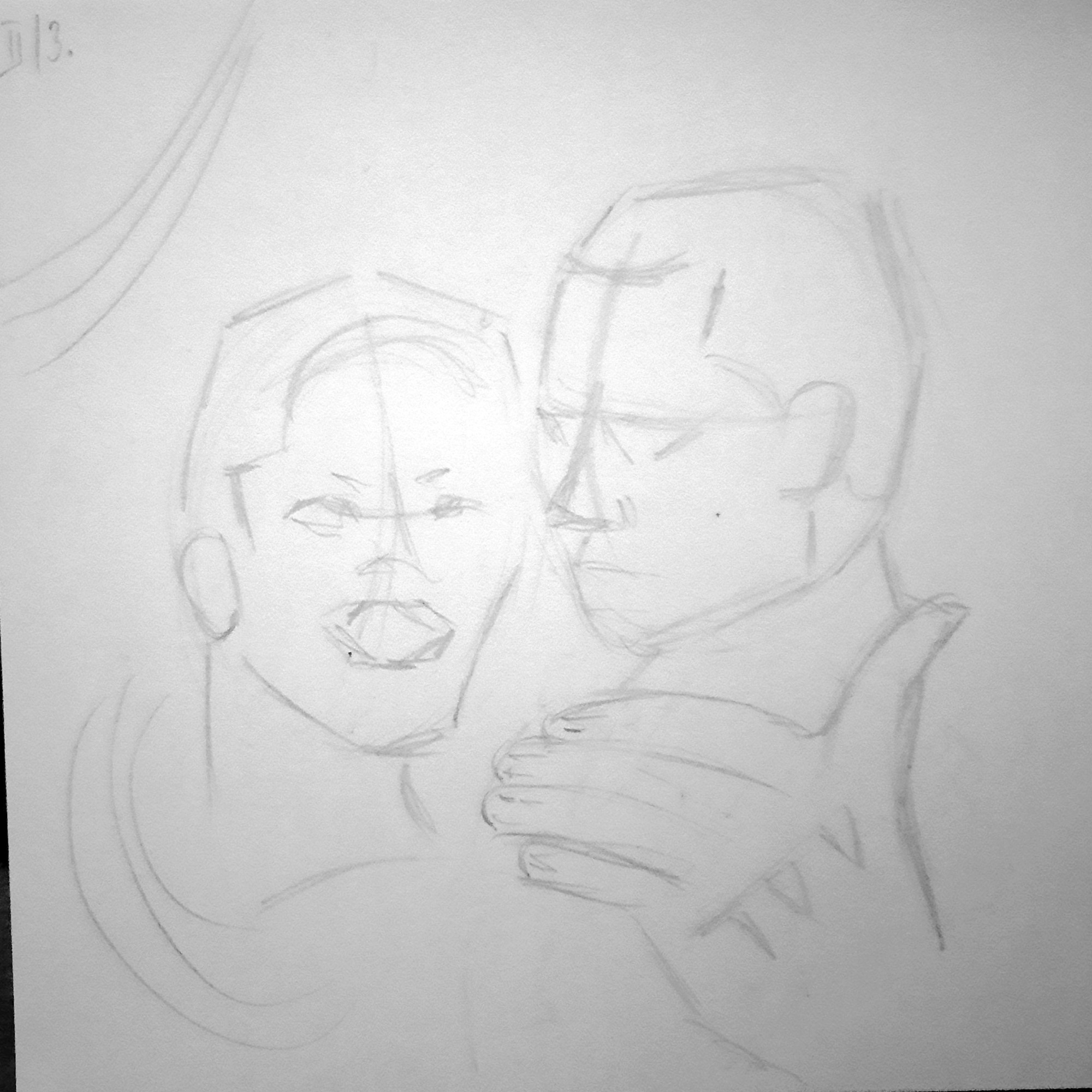 In dieser Phase etstanden über 20 Skizzen um das Thema, oft nur Bruchstücke
